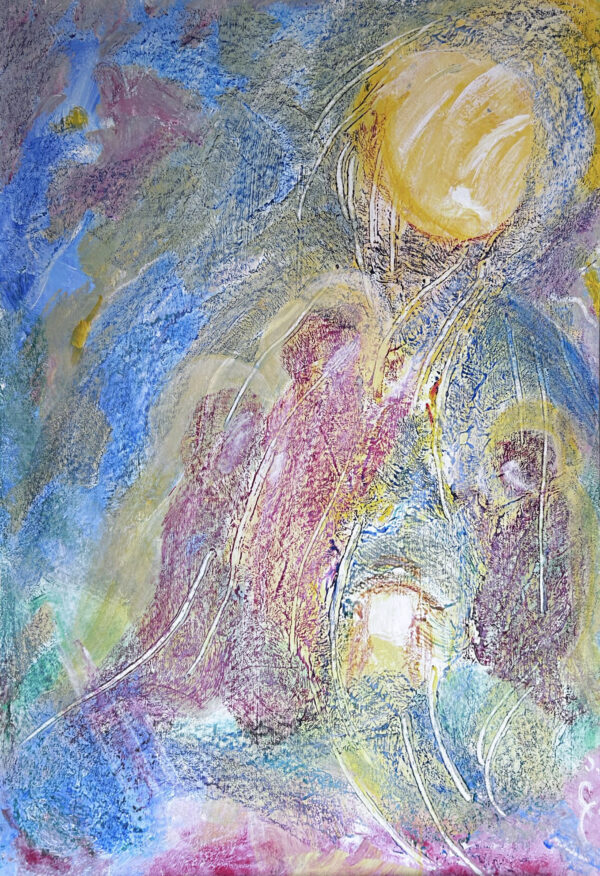 Medium: Tempera and oil pastels on cardboard canvas