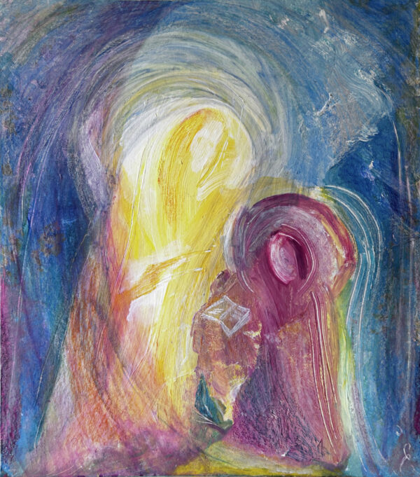 Medium: Tempera and oil pastels on cardboard canvas