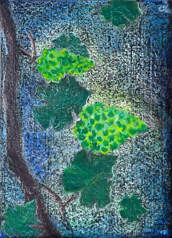 Medium: Tempera and oil pastels on cardboard canvas
