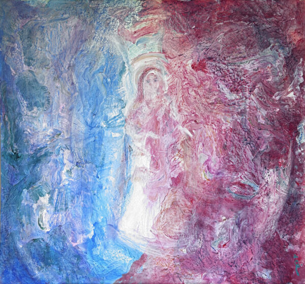Medium: Tempera and oil pastels on cardboard canvas