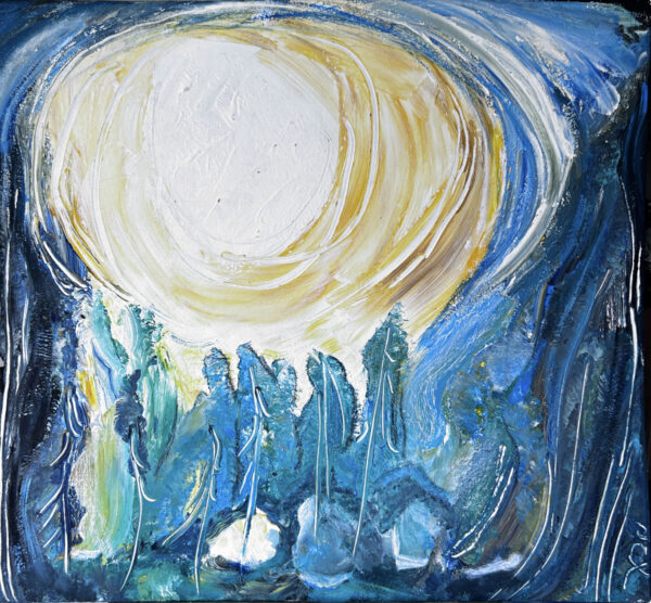 Medium: Tempera and oil pastels on cardboard canvas