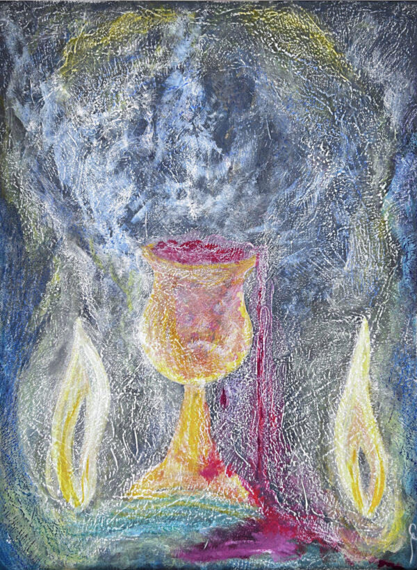 Medium: Tempera and oil pastels on canvas